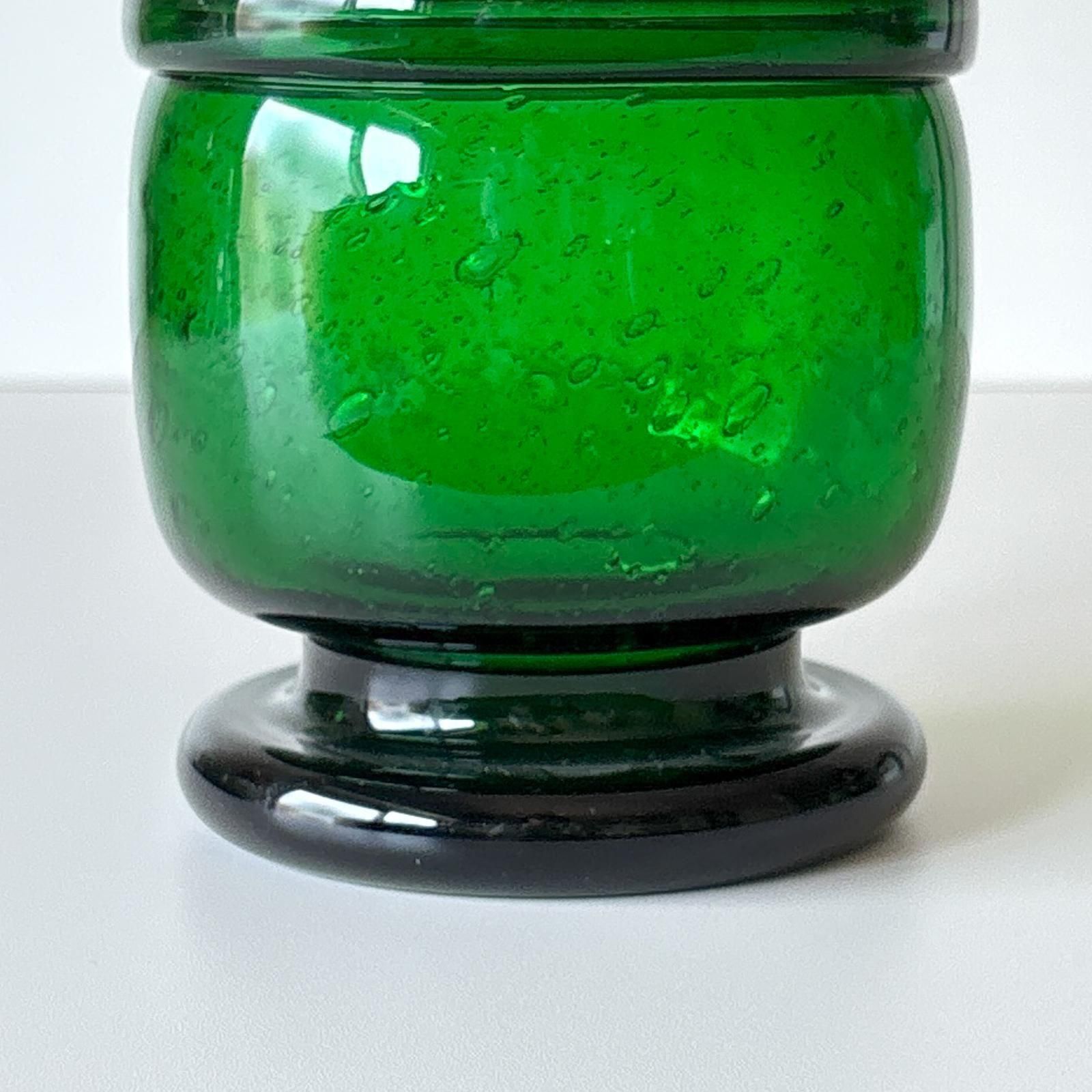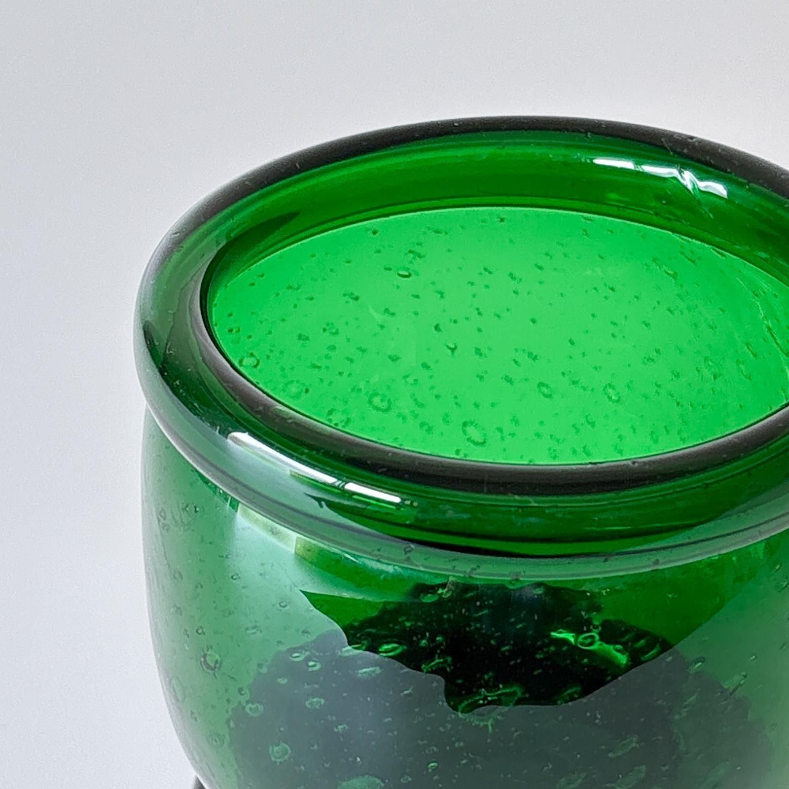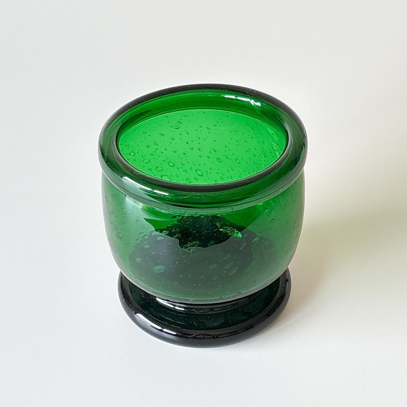 ハンドメイドで作られたガラス作品は、全体に入った細かな気泡が美しい逸品で、落ち着いた深いグリーンが魅力的で存在感があります。