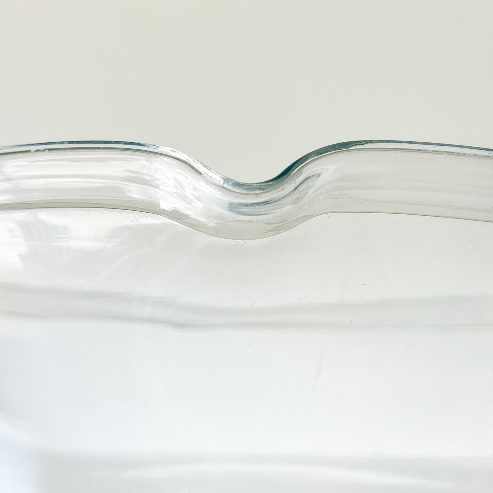 スウェーデンで1800年代後期から1920年代まで、手吹きで作られていたガラスのリップボウルです。グラスは無色透明です。薄手のためとても軽く、フチが二重に仕上げられたこの時代のグラスはとても好みのデザインです。この年代にスウェーデンで作られていた薄地グラスは、限られた原材料でいかにして生産するかに挑戦していた時代だったそうです。そんな背景から生まれたグラスは、手作りならではのわずかなゆらぎが感じられる、古き良きアンティークです。深さのあるたっぷりサイズのボウルには、サラダをたっぷりと盛ったり、柑橘やりんごなどのフルーツを入れてキッチンやテーブルに置いておくだけで、すてきな佇まいになります。