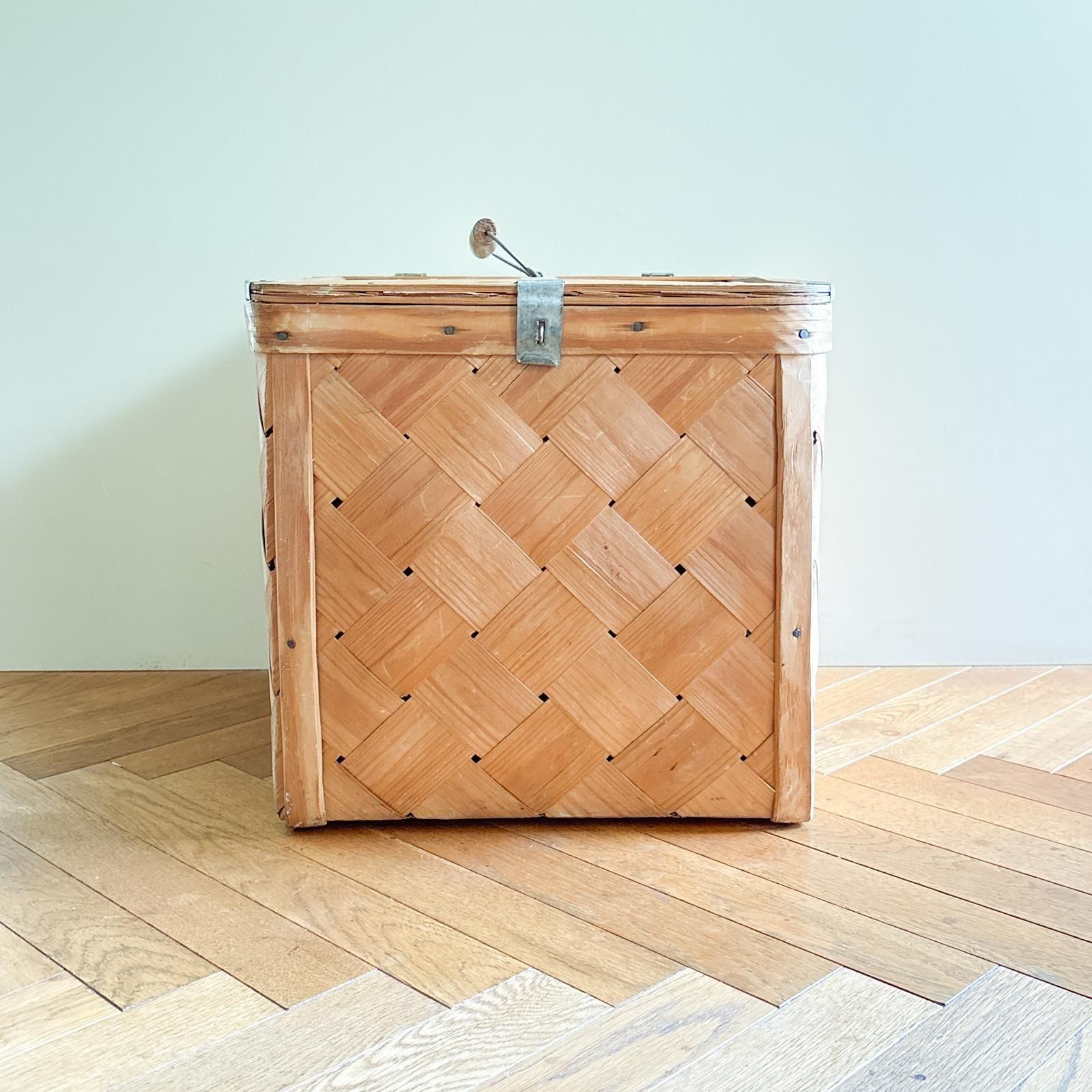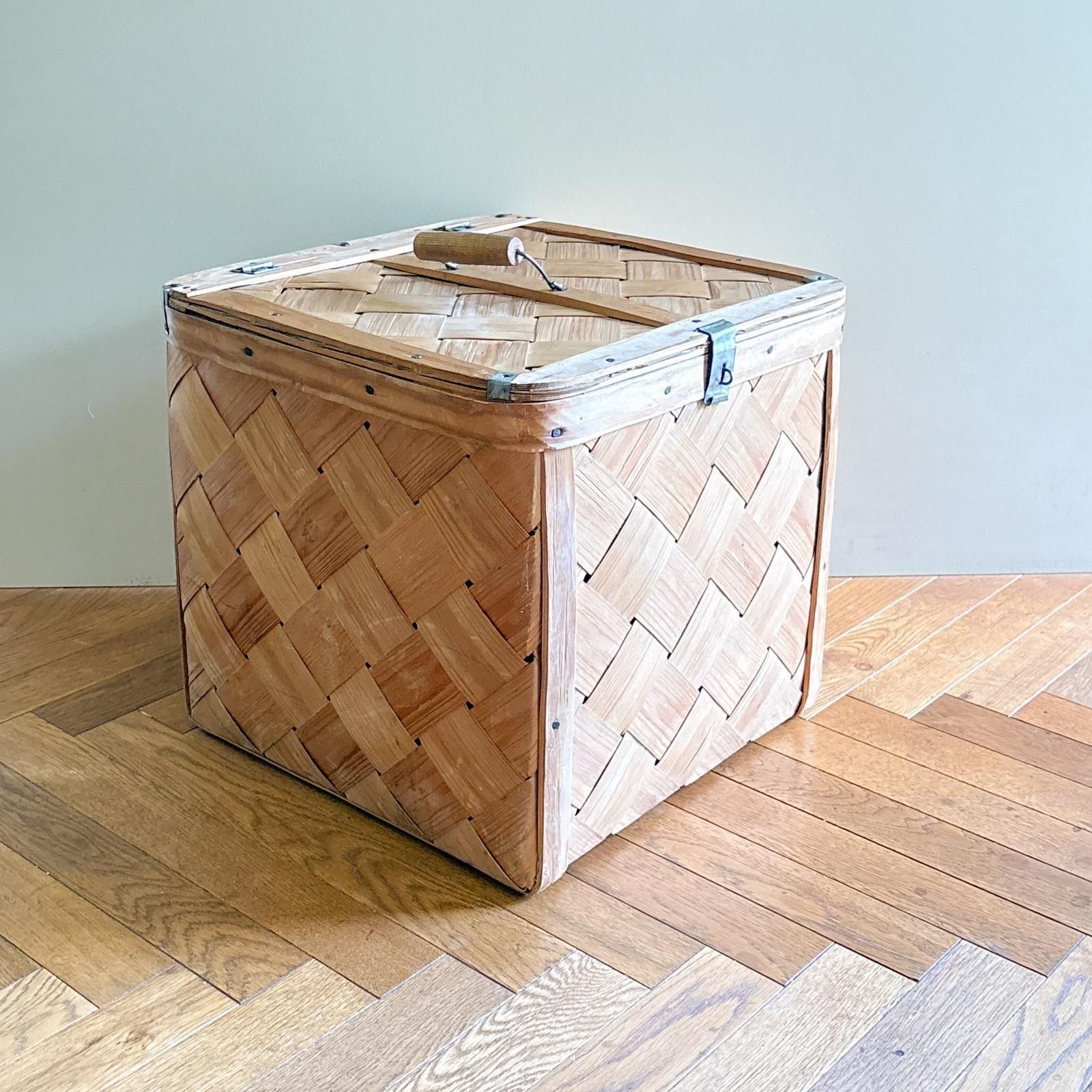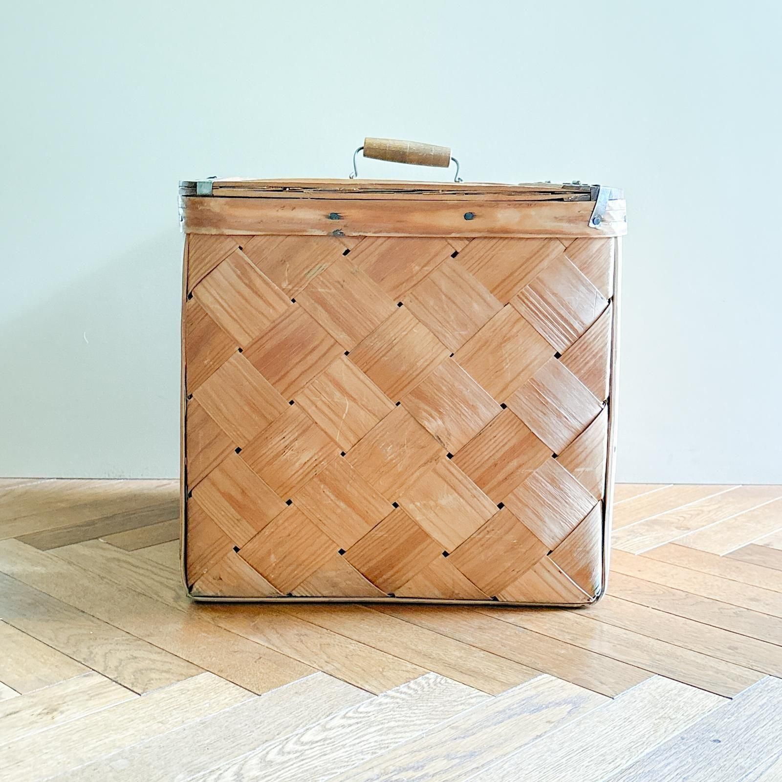 スウェーデン製のヴィンテージバスケットです。スウェーデンでは「スポンコリ」と呼ばれ、昔から収納カゴとして親しまれてきました。スポンコリは長方形が多い中、キューブ型を見つけました。フタ付きのカゴは収納力たっぷりで、この雰囲気のあるバスケットを部屋に置くと、いいインテリアになりますよ。コンディション良好なので、このキューブ型を探されていた方はこの機会にぜひ!