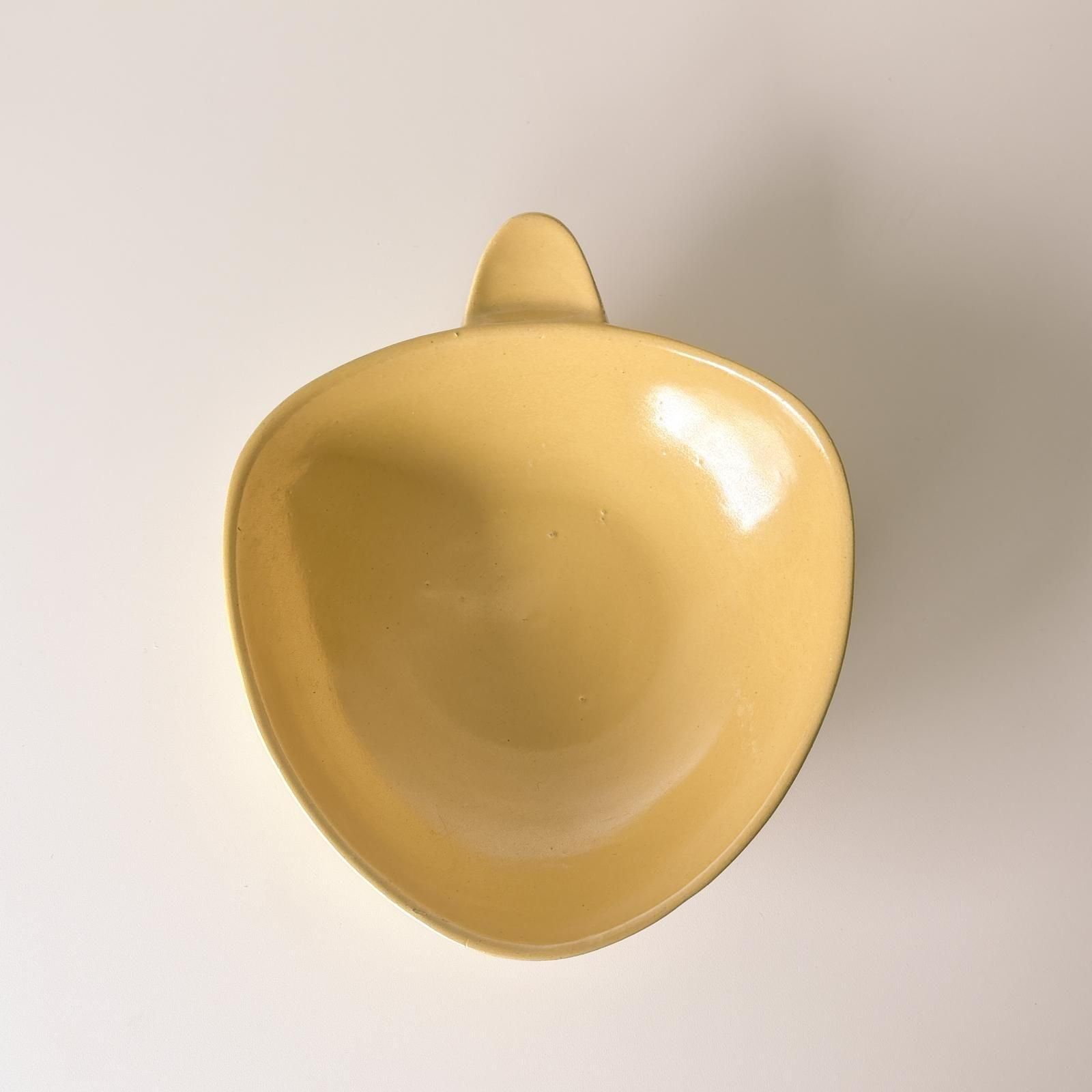 フィンランドで見つけたハンドル付きのディープボウルです。丸みを持たせた三角形のボウルは深さがあって、厚みのあるハンドルが持ちやすく、デザインのアクセントになっています。
