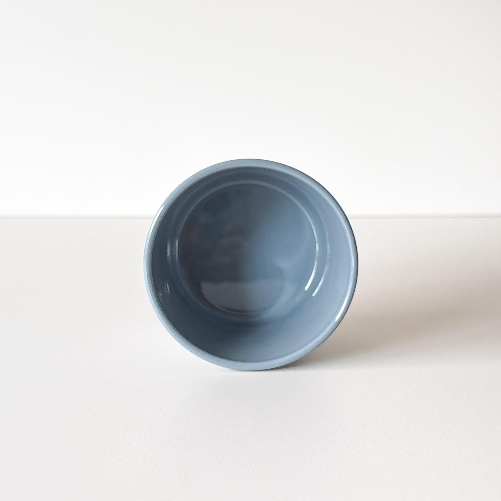 TEEMAのヴィンテージのカップは白い王冠マークのロゴです。ブルーグレーの絶妙な色合いが魅力的です。もともとは蓋付きのシュガーポットとして作られた本体ですが、持ち手無しのフリーカップとお茶やデザートに使えます。