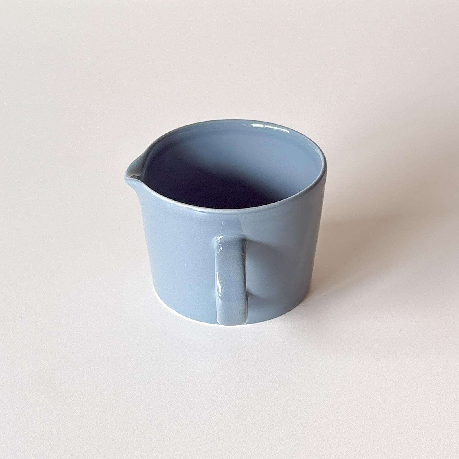 ARABIA・TEEMAシリーズのヴィンテージのクリーマーです。バックスタンプは王冠ロゴです。ブルーグレーの絶妙な色合いが魅力的です。ハンドルは注ぎ口から90°の位置に付けられたクリーマーは、このシリーズの中でも特徴のあるデザインとして知られています。