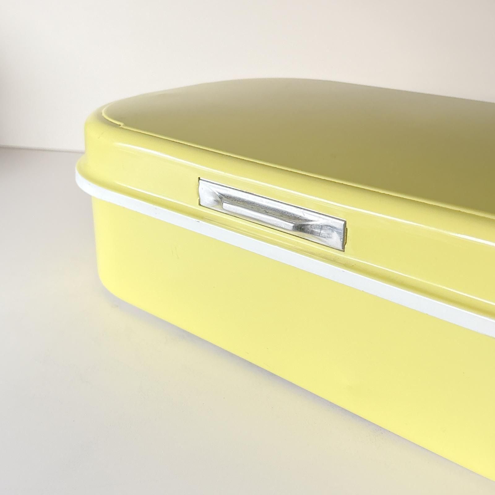 スウェーデンのニルスヨハン社で作られていたブレッド缶です。きれいなイエローの色合いが魅力的です。シナモンロールなどのパンやお菓子をしまっておくためのブレッドボックスですが、収納ボックスとしても使っていただけます。容量がたっぷりあるので中に何を収めようかと考えるのも楽しいですね。