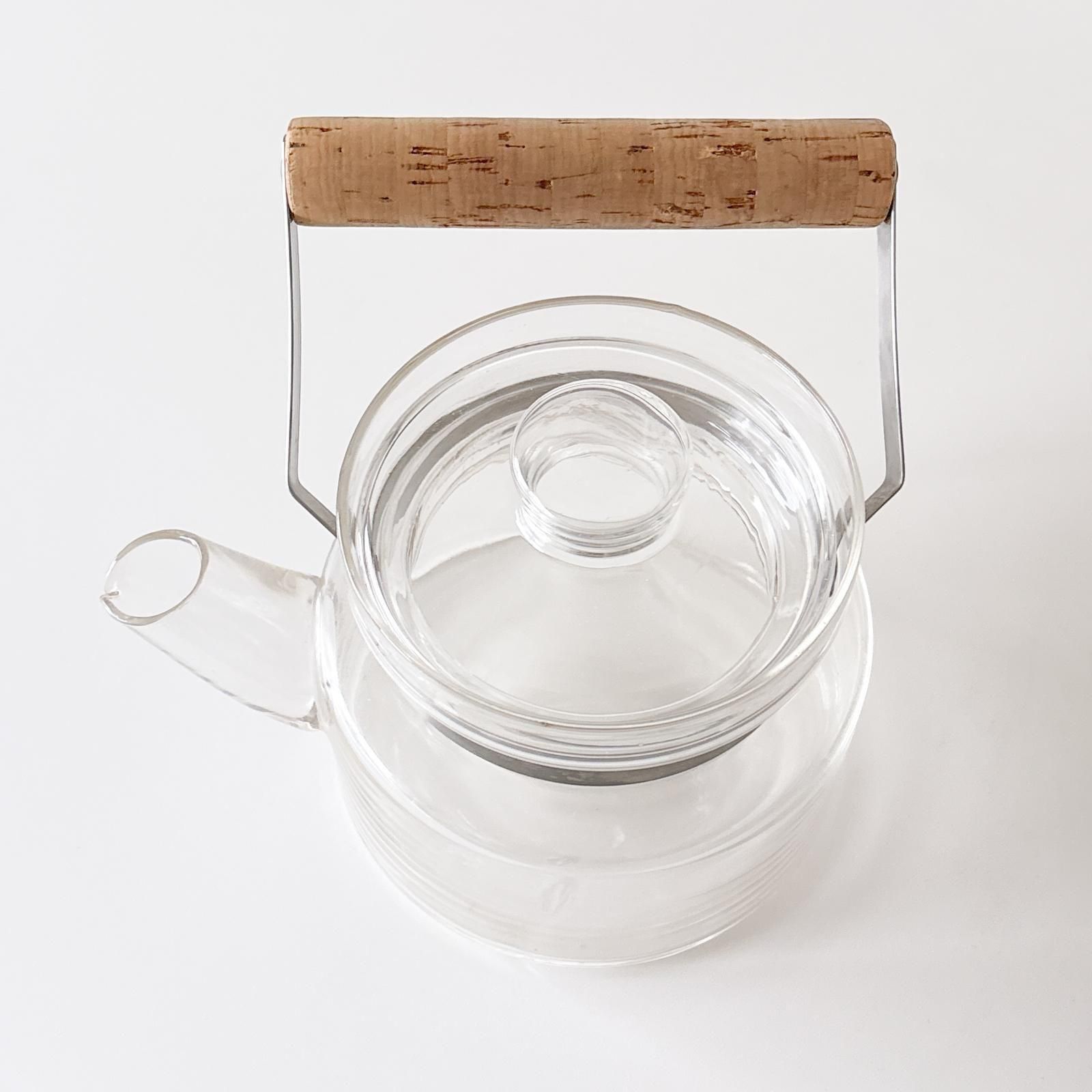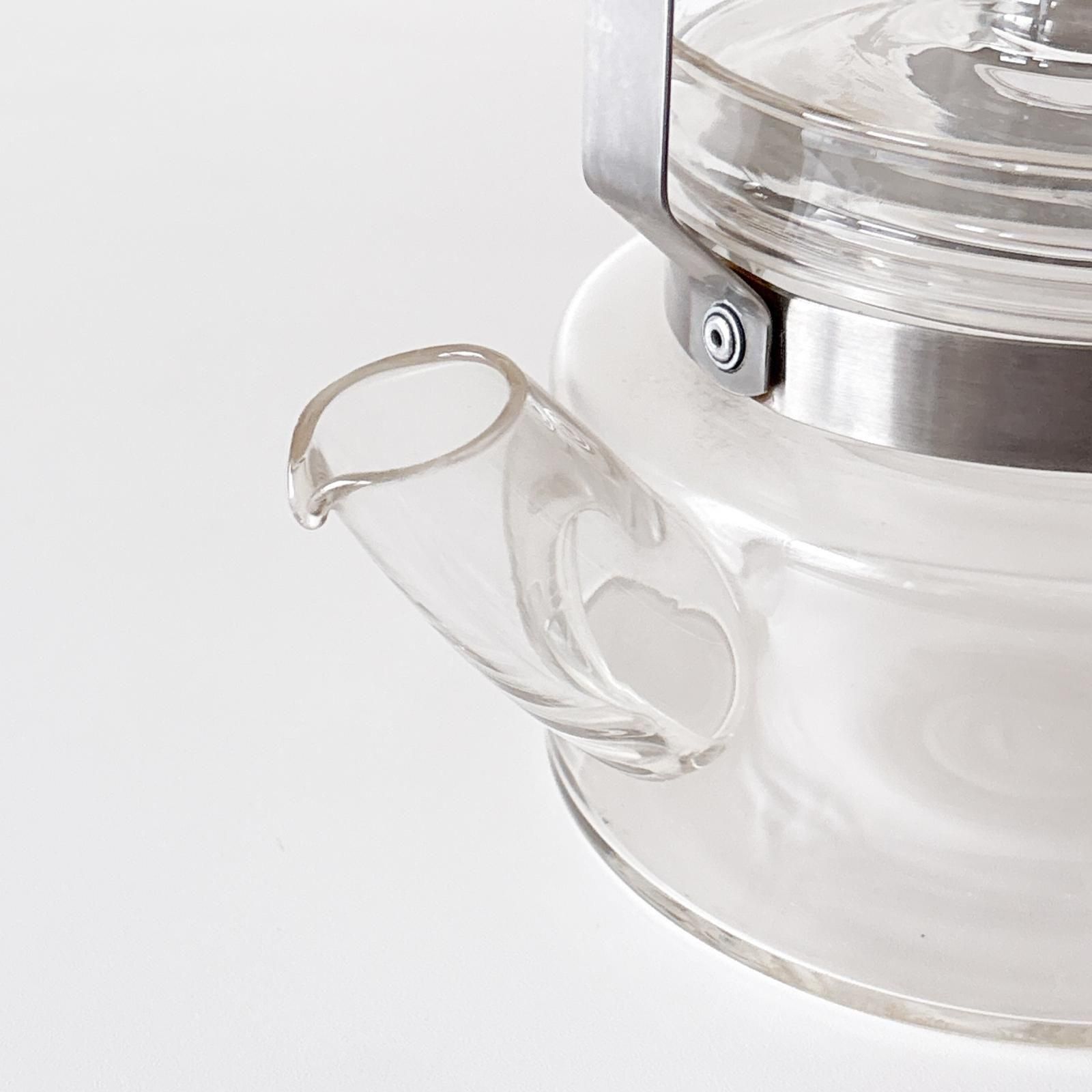 スウェーデンのプロダクトデザイナー、シグネ・ペーション・メリンがデザインし、1971年にBODA NOVA社から発売された耐熱ガラスシリーズのティーポット、Sサイズです。円柱形のすっきりとしたデザインのポットはマウスブロウ(宙吹き)によって作られたもの。そのため注ぎ口とフタそれぞれに個体差があり、ハンドメイドならではの魅力が感じられる逸品です。