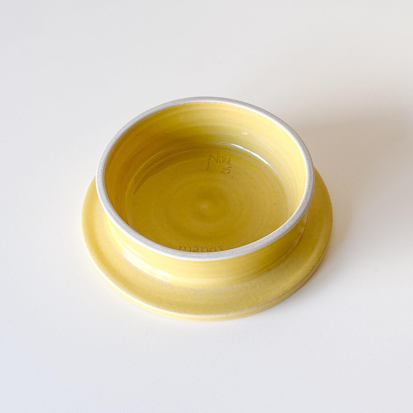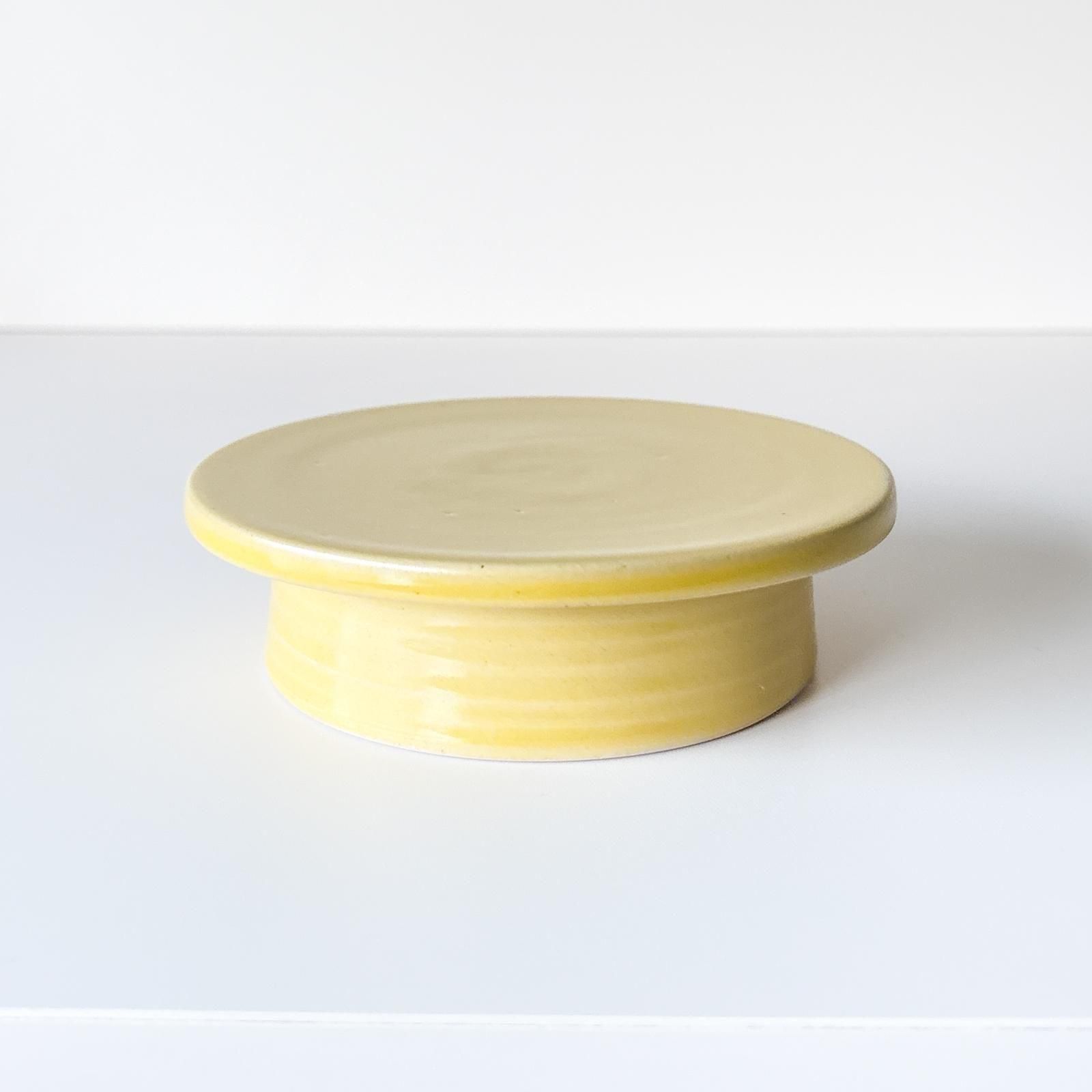 スウェーデン・ストックホルムにあるセラミックスタジオmanosのファウンダーであるkarinとNillaがふたりで作陶したミニサイズのケーキスタンドです。昨年スタジオを訪れ、数ある型見本の中からこのケーキスタンドを選び、SPOONFULのキーカラーにあわせてイエローを別注して製作していただきました。裏面には製作者のNillaのサインと製作年の25が手彫りされています。